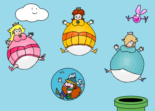 In this (fake) new crossover game, you play as the princesses of the mario and rayman universes but when the characters fail, they suffer the other game's bubble-themed punishments. Let's hope for their sake, there's no P balloons floating about.