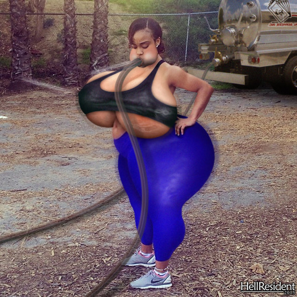 "Let her have it boys!!! Let's see how big my sister can get!!!!" Gloria kept yelling, as Rose's expression went from worried to terrified in seconds, as she watched a powerful bulge of air, travel from the air-tank of the truck througout the entire hose, menacly approaching her. Rose's cheeks were the first to bloat, when the powerful stream of gas hit her face, her eyes going wide in distress as she tried to moan though the muffled mess of her lips and the hose, as the air started inflating her up like an inflatable love doll... In a matter of minutes her curves shot out to 5 times her original fit size, her expanding breasts stretching her black tank-top from the inside a they reached the size of beach balls, shine and bulgy all over, streams of pressurized air leaking from her nipples, while her thighs and ass were steadily bloating wider from bellow, to the size of truck-tires, overstretching her blue leggings to its limits.