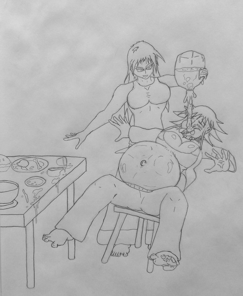 Blaire is stuffing Nami silly with all sorts of food and forcing it down with a gallon of eggnog.